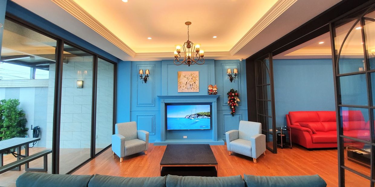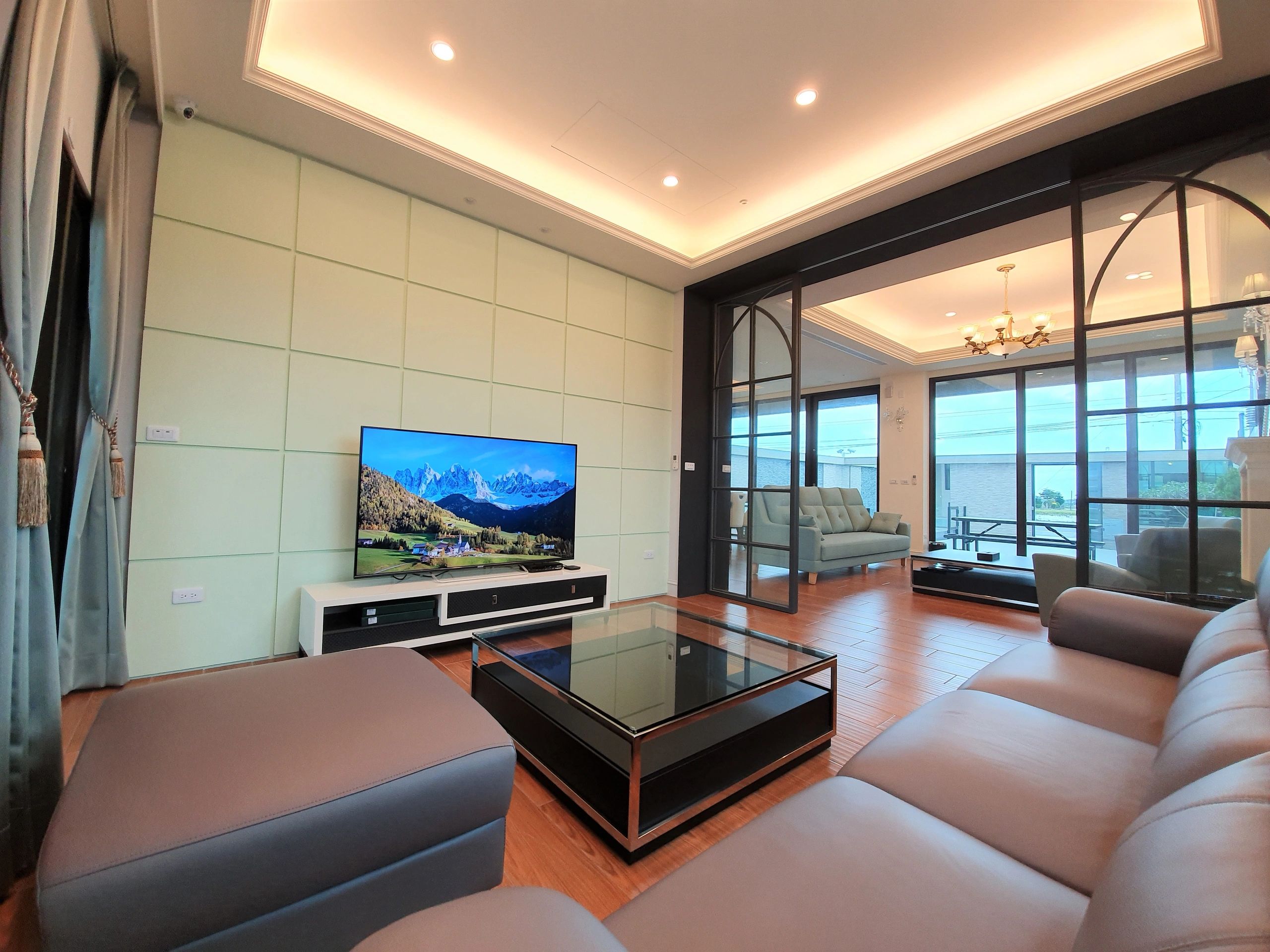 豪華雙客廳配備65吋大電視、幾十部最新超高畫質電影、適合各年紀玩的PS4遊戲機與遊戲 (可4人共遊)、麻將 (可開兩桌、含器具)、熱門團體桌游等